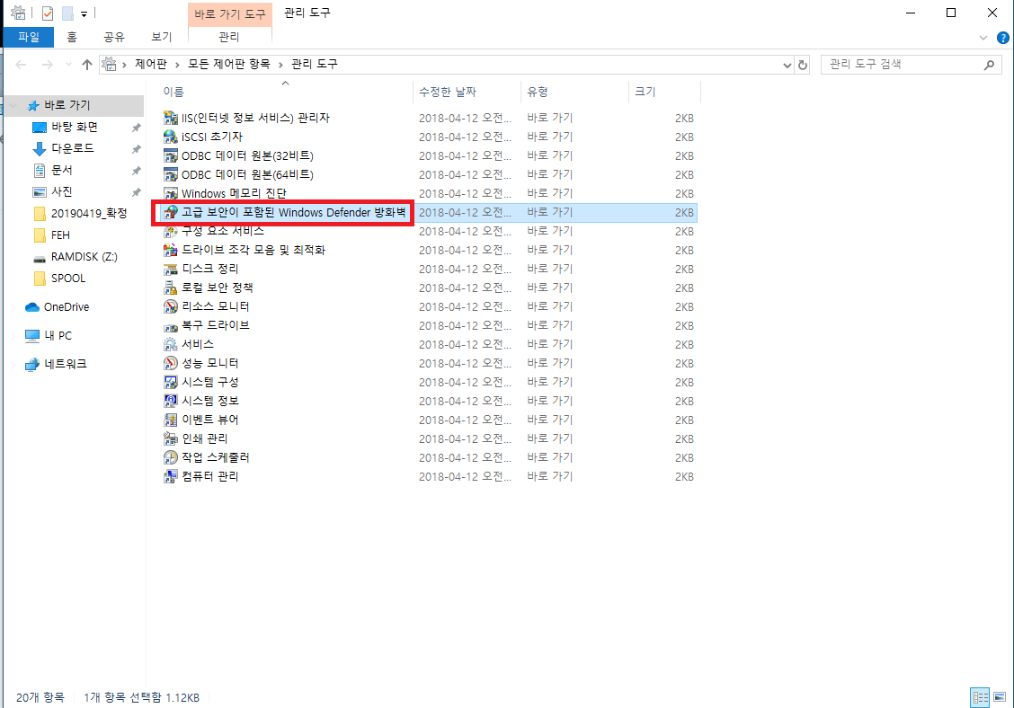 관리 도구에서 고급 보안이 포함된 Windows Defender 방화벽을 실행합니다.