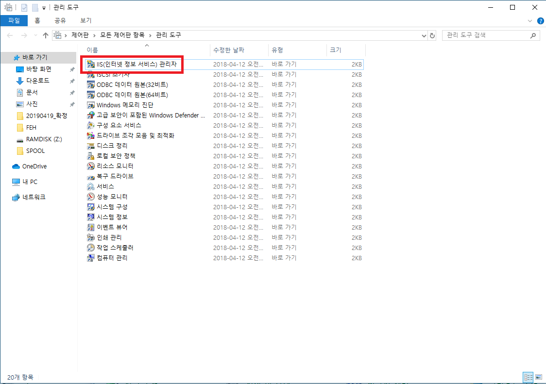 관리 도구 맨 위에 있는 IIS (인터넷 정보 서비스) 관리자로 이동합니다.