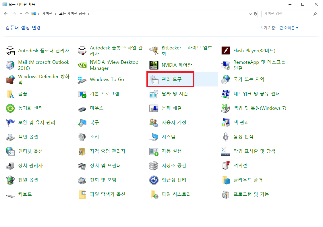 다시 제어판으로 이동하여 이번에는 관리 도구로 이동합니다.